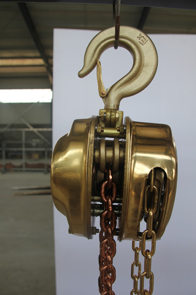 1噸防爆手拉葫蘆采用鋁青銅和鈹青銅材質(zhì)鍛造,設(shè)計(jì)結(jié)構(gòu)合理,使用安全性高,在使用過程中,不會(huì)產(chǎn)生火花,因此被廣泛應(yīng)用于石油、石化、油站、油庫、采氣、化工、軍工、電力、礦山、電子、鐵路、等潛在火患和爆炸的危險(xiǎn)環(huán)境中。